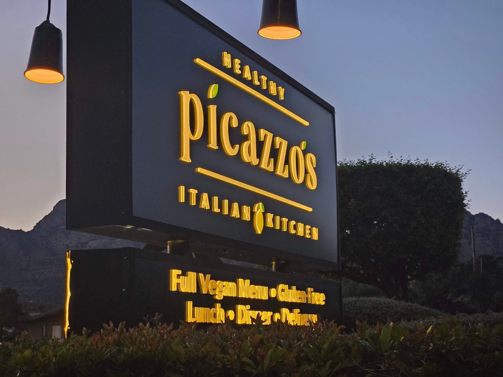 Review: Picazzo's was recommended by our Pink Jeep Tours driver. He said he loves taking his wife there when they come to town! We were wanting a nice place to dine on our last night in Sedona and followed his recommendation. It is billed as a "healthitarian" establishment. My wife was surprised because the pizza was covered by greasy meats ( I ordered pepperoni and sausage). Maybe it's healthy because I have never seen so many gluten-free options! Also, our Italian salad came without dressing (healthy?). It's not really fine dining, but it is a step above a pizza joint. The server seemed disaffected serving us, no smile, no interest in her work, which surprised me because every place I've been to here has wonderful servers. I would not revisit this restaurant.