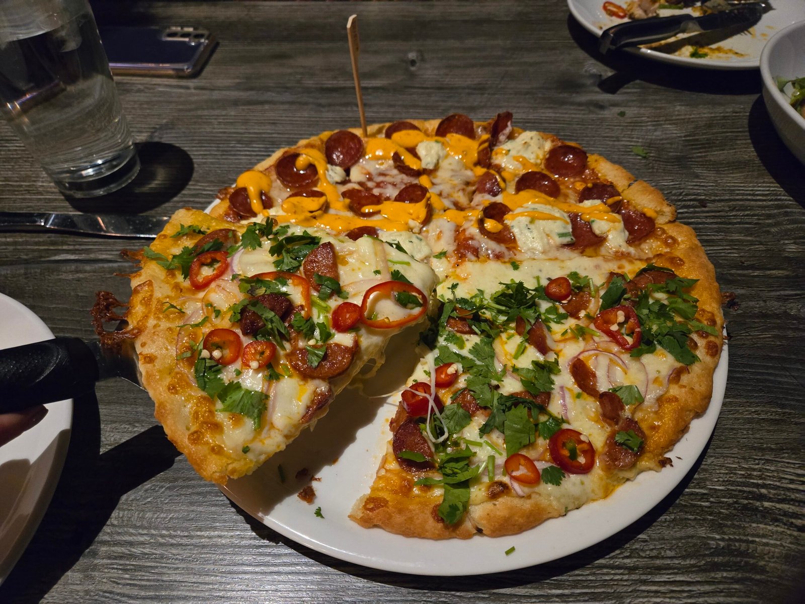 Review: The service is decent with friendly staff, the kitchen works somewhat slower than I expected but everything seems to be made to order so that's nice. The food is pretty good. The pizza is fairly well made though the meats get a bit greasy. The vegan cheese bread was surprisingly good and the salads are all fresh tasting. Overall the place bills itself as a healthy (ish?) eatery and it executed that theme.
